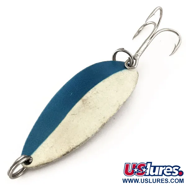 Un poids substantiel de 2/3 oz (18 g) offre la densité nécessaire pour les lancers à longue distance et la traîne en eaux profondes. Identifiée par le code produit 11494, cette Acme Little Cleo Glow présente le profil bombé classique qui a fait de la marque un incontournable des boîtes de pêche depuis ses débuts aux USA. La finition est divisée longitudinalement entre une moitié bleu profond et une section luminescente, qui se transforme en un éclat vert brillant dans l'obscurité. Mesurant 5,5 cm (2 1/4"), le leurre est équipé d'un hameçon triple de haute qualité et d'un anneau brisé. L'exemplaire est en excellent état, noté 5/5, la peinture et le métal ne montrant aucun signe d'usure. Cette cuillère de type Glow in Dark est particulièrement efficace pendant les périodes de faible luminosité ou lors de pêches à des profondeurs où la lumière naturelle est limitée.