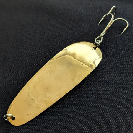 Mesurant exactement 3 1/2 pouces (9 cm) de longueur, le profil effilé de cette cuillère de couleur or est une signature du savoir-faire d'Acme dans la fabrication de leurres métalliques. Connue sous le nom de Looter et identifiée par le code produit 19466, cet exemplaire fabriqué aux États-Unis est une rareté dont la production a cessé, recherchée par les collectionneurs pour sa valeur historique. Le leurre pèse 1/3 oz (9 g) et porte le nom de la marque ainsi que le modèle estampillés directement à l'intérieur de la cuillère. Son armement comprend un hameçon triple piquant et des anneaux brisés aux deux extrémités, conservant la configuration d'origine pour la pêche à la traîne. L'état général est de 4/5, montrant de légères marques de surface dues à des manipulations soigneuses, tandis que la finition dorée garde tout son éclat. Fabriqué aux USA, ce modèle a été spécifiquement conçu pour la traîne, offrant une répartition du poids qui reste stable dans la colonne d'eau pendant la récupération.