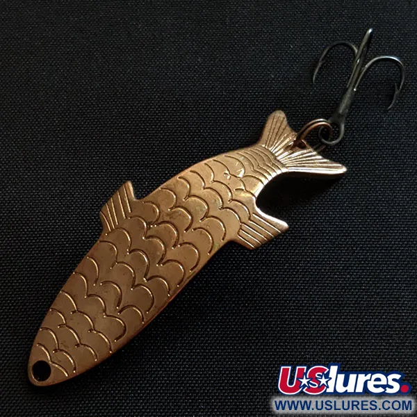 Mesurant 5 cm (deux pouces), le corps en métal embouti de cette cuillère reproduit la silhouette d'un poisson fourrage avec des détails d'écailles particulièrement profonds. Cette Acme Phoebe, identifiée par le code produit 19732, présente une finition cuivre riche qui offre un profil visuel distinct selon les conditions de luminosité. Fabriqué aux États-Unis, la conception du leurre exploite des propriétés hydrodynamiques spécifiques pour créer une illusion tridimensionnelle, une caractéristique développée par l'équipe d'Acme pour garantir une efficacité en eaux profondes comme en zones peu profondes. Cet exemplaire est en excellent état (5/5), conservant sa surface métallique lustrée et son armement d'origine. Les pêcheurs utilisent fréquemment ce poids de 7 g (1/4 oz) pour le lancer, car il autorise une grande variété de vitesses de récupération, de rapide à lente et constante. Un hameçon triple est monté à l'arrière via un anneau brisé robuste.