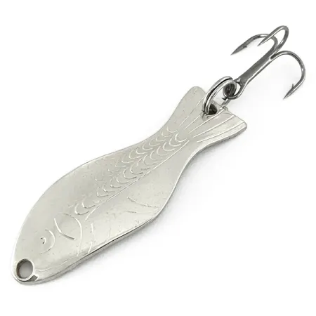 Pesant 1/4 oz (7 g), cette cuillère ondulante classique arbore une finition Nickel brillante qui a conservé un haut niveau de clarté. Ce spécimen est en état 5/5, présentant une surface propre et réfléchissante sur toute sa longueur de 2" (5 cm). Estampillé avec le marquage « AL'S GOLDFISH PAT. 21408 » au verso, le design remonte à 1952 et a gagné sa place dans la liste des « 50 Greatest Lures of All Time » de Field & Stream en 2006. Le corps en forme de poisson est détaillé avec des motifs d'écailles gravés et un évasement distinct de la queue, armé d'un hameçon triple robuste attaché via un anneau brisé. Identifiée par le code produit 7163, cette cuillère fabriquée aux USA est un incontournable pour les pêcheurs de truites et de petits carnassiers.