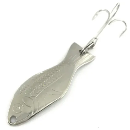 Un placage en nickel poli recouvre le corps en forme de poisson de 7 g (1/4 oz) de cette cuillère ondulante emblématique, soulignant les motifs d'écailles estampés et les détails des branchies le long des flancs. Mesurant 5 cm (2") de long, le côté concave inversé affiche clairement les marquages du fabricant pour Al's Gold Fish et le numéro de brevet original, 2 542 806, qui fait remonter cette conception à 1952. Ce spécimen particulier, identifié par le code 7236, est dans un état 5/5, conservant une surface réfléchissante brillante sur toute sa silhouette. Reconnue par Field & Stream en 2006 comme l'un des 50 meilleurs leurres de tous les temps, la cuillère présente une configuration simple mais efficace comprenant un hameçon triple monté à l'arrière et un seul trou d'attache au nez. L'estampage au dos reste profond et lisible, gage des normes de production élevées établies à l'origine aux USA.