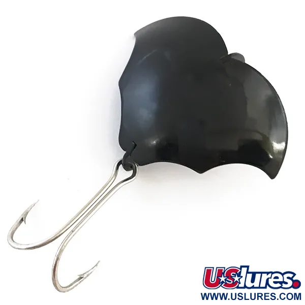 Fini dans un noir profond et solide, ce leurre de lancer vintage en métal offre une silhouette unique qui se distingue dans toute collection d'articles de pêche classiques. Mesurant 3,5 cm (1 1/2") et pesant 14 g (1/2 oz), le Baby Bat présente le travail du métal distinctif en forme d'ailes de chauve-souris caractéristique du fabricant américain Prescott Spinner. L'armement se compose d'un crochet double argenté proéminent attaché via un anneau brisé robuste, destiné aux techniques de lancer. En examinant de plus près les ailes métalliques, les estampages originaux « Bat » et « 3B » restent nets et lisibles, identifiant ce spécimen comme le code produit 5409. Ce leurre particulier est exceptionnellement bien conservé, conservant une surface propre avec une note de condition de 5/5.