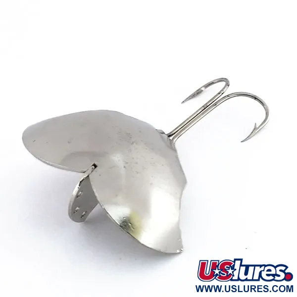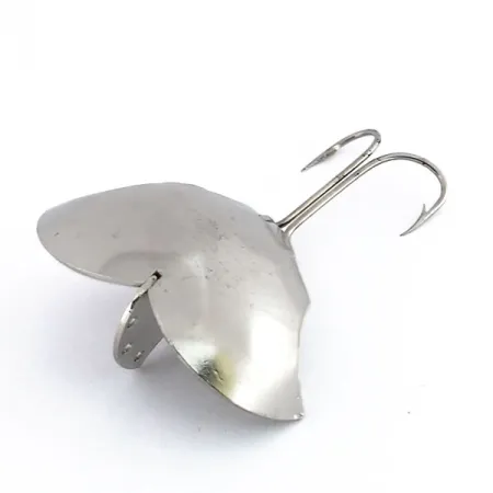 Du nickel poli recouvre chaque surface de cette cuiller ondulante de 14g (1/2oz), reflétant la lumière avec un éclat que les collectionneurs identifient immédiatement comme la signature de la société Prescott Spinner. Mesurant exactement 3,5 cm (1 1/2"), la Baby Bat, répertoriée sous le code produit 9883, est un matériel vintage fascinant fabriqué aux États-Unis. Sa silhouette distincte imite une chauve-souris en plein vol, avec des ailes étampées dans une plaque de métal durable qui conserve une finition miroir. À l'avant du leurre, une quille verticale offre plusieurs points de fixation pour la ligne, permettant un contrôle précis de la profondeur de nage selon l'endroit où vous fixez votre agrafe. L'arrière est équipé d'un hameçon double robuste solidement fixé au corps. Ce spécimen particulier mérite une note de condition de 5/5, apparaissant exceptionnellement propre avec des pointes d'hameçons piquantes et une surface lustrée. Conçue pour le lancer ou le jigging vertical, le rapport poids/taille de cette cuiller garantit qu'elle atteint efficacement les structures profondes.