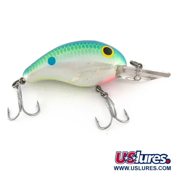 Le coloris Citrus Shad habille le corps compact de ce Bandit 200, présentant un dos bleu-vert à motif d'écailles qui transitionne vers des flancs perlescents. Pesant 8,5 g pour une longueur de 5 cm, ce modèle (code produit 7852) est conçu pour atteindre des profondeurs allant jusqu'à 3 m. Son profil visuel est accentué par un point bleu distinct sur le flanc, une gorge rouge-rosé et un œil jaune à pupille noire. Fabriqué aux États-Unis, ce poisson-nageur de type deep-diver intègre une chambre bruiteuse pour la prospection du sandre et du brochet en lancer-ramener ou à la traine. Sa finition réactive aux UV assure une visibilité optimale dans les couches d'eau sombres. L'armement se compose de deux hameçons triples argentés d'origine fixés sur son corps flottant.