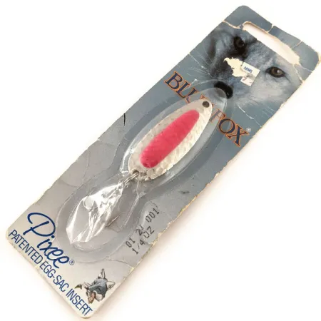 Un insert en forme de sac d'œufs rose fluorescent vibrant se trouve au cœur de la palette en nickel martelé, constituant l'élément visuel emblématique de ce modèle. Répertorié sous le code produit 11858, ce leurre mesure 4,5 cm (1 3/4") et pèse 7 g (1/4 oz), offrant la masse nécessaire pour des lancers longue distance, même face aux vents côtiers. La structure en laiton lourd est conçue pour résister aux environnements corrosifs typiques de l'eau salée et des puissants courants fluviaux. Ce Blue Fox Pixee est neuf, conservant son emballage d'origine de 1984 de l'époque de Cambridge, Minnesota. Les propriétés réactives aux UV et la texture martelée sont conçues pour une visibilité accrue et des flashs intenses lors du lancer ou de la traîne. Les pêcheurs utilisent généralement ce modèle pour des espèces telles que la truite arc-en-ciel, le saumon et le brochet, profitant de sa capacité à être pêché en profondeur ou en surface. Au dos du carton, des instructions techniques décrivent des techniques spécialisées comme le pompage en lac et le roulement en rivière. Ce spécimen affiche une note d'état de 6, l'armature restant neuve d'usine et n'ayant jamais touché l'eau.
