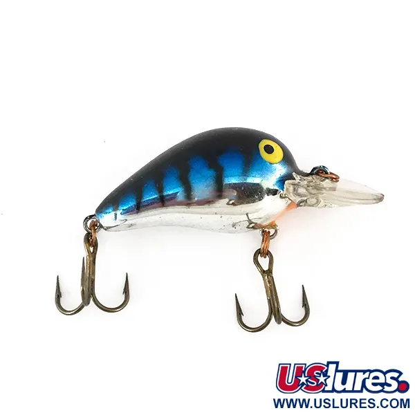 Scintillant dans une riche finition Bleu Métallique, ce crankbait ultraléger présente la silhouette classique au corps haut qui définit l'héritage de BOMBER depuis des décennies. Ce spécimen particulier, identifié par le code produit 7826, mesure un format compact de 1 1/4" (3 cm) et ne pèse que 1/16 oz (2 g), ce qui en fait un outil spécialisé pour cibler la perche et le chevesne. La conception intègre une bavette transparente configurée pour atteindre des profondeurs de 1,2 à 1,8 m (4 à 6 ft) en technique de lancer. Visuellement, le leurre présente des barres verticales sombres frappantes sur un dégradé bleu qui transitionne vers un ventre argenté réfléchissant, le tout complété par de grands yeux jaunes à haut contraste. En tant que modèle flottant, il est conçu pour les applications en eaux peu profondes où la précision est essentielle. L'état du corps et de l'armement est exceptionnel, paraissant très bien entretenu, ce qui lui vaut une note de 5/5. Ses origines de fabrication américaine sont visibles dans l'attache de ligne robuste et les hameçons triples originaux au fini bronze.
