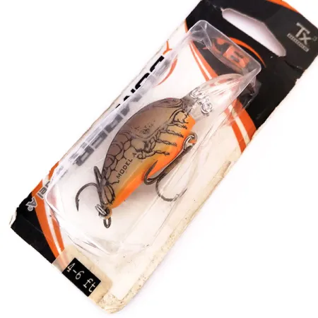 Pesant précisément 9 g (1/3 oz), ce crankbait vintage témoigne d'une époque de production notable en Équateur. Le corps mesure 5,5 cm (2 1/4") et arbore un motif détaillé d'écrevisse, caractérisé par un ventre orange vif et une carapace beige aux lignes anatomiques sombres. Référencé sous le nom Model 7A Baby Striper, ce leurre est un plongeur flottant conçu pour évoluer à des profondeurs comprises entre 2,4 et 3,0 m (8-10 ft). Les pêcheurs utilisent généralement cette taille pour le lancer ou la traîne du doré jaune et du grand brochet. Cet exemplaire est neuf et conservé dans son emballage transparent d'origine, préservant la finition d'usine et l'armement dans un état impeccable. La bavette transparente est solidement intégrée au nez, caractéristique de la série Model A. Code produit : 10284.