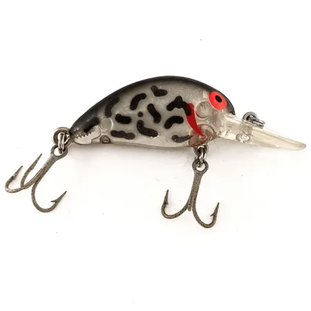 Pesant exactement 1/4oz (7g), ce crankbait compact illustre parfaitement le savoir-faire qui a fait de Bomber une référence incontournable de la fabrication de leurres américaine. Ce spécimen de 1 3/4" (4,5cm), identifié par le code 12519, présente un corps argent fumé translucide orné de taches léopard noires audacieuses et de discrètes stries branchiales rouges. Conçu comme un leurre flottant, il utilise une bavette arrondie transparente pour atteindre des profondeurs comprises entre 0,9 et 2,1m (3-7ft), une plage classique pour cibler le sandre ou le brochet actif. Son profil visuel est accentué par des yeux rouges distinctifs aux pupilles noires, un trait caractéristique recherché par les collectionneurs des premiers modèles Bomber en plastique. L'armement est en condition 5/5, comprenant deux hameçons triples tranchants et un anneau brisé robuste. Originaire des États-Unis, la série Model B a contribué à définir la catégorie moderne des crankbaits de prospection peu profonde à moyenne grâce à sa conception moulée durable.