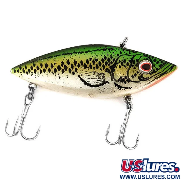 Un motif classique Baby Bass définit la finition de ce spécimen vintage, avec un dos vert foncé qui se fond dans des écailles argentées et dorées aux taches noires proéminentes. Pesant 1/2 oz (14 g), la nature coulante de ce leurre en fait un choix polyvalent pour le lancer et la traîne dans différentes couches d'eau. Son profil de 7,5 cm est accentué par un œil rouge vif et des motifs de plaques branchiales détaillés, reflétant les standards de fabrication américains. Cotton Cordell a produit le Bait Bonanza, identifié par le code produit 12866, comme un leurre de type rattlin bruyant destiné à une large gamme d'espèces, notamment le brochet, le sandre et la perche. Les hameçons triples d'origine et l'attache de ligne supérieure sont bien conservés, affichant un état 5/5. La tête plate est caractéristique de ce modèle, conçu pour résister aux rigueurs de la pêche en eau douce.