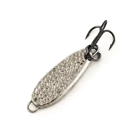 Une finition argent martelé profondément texturée confère à cette cuillère Cotton Cordell C.C. Little Mickey son principal attrait visuel, assurant une réflexion maximale de la lumière lors des présentations verticales. Pesant 3/16 oz (5,5 g), le corps métallique compact mesure 1" (2,5 cm) et porte l'estampille originale « CORDELL » clairement embossée sur le côté convexe. Ce leurre de jigging fabriqué aux États-Unis est équipé d'un hameçon triple à finition sombre sécurisé par un anneau brisé robuste, tandis que le nez présente une boucle intégrée pour une fixation directe de la ligne. L'exemplaire est en condition 5/5, conservant son éclat d'origine sans aucun signe d'usure sur les surfaces martelées ou l'armature. Conçue spécifiquement pour le jigging, la densité du métal lui permet d'atteindre rapidement la profondeur souhaitée tandis que sa forme en goutte d'eau maintient la stabilité pendant la descente. L'origine de fabrication est fièrement ancrée aux États-Unis, un fait reflété dans la robustesse et le marquage net de ce modèle vintage. Code produit : 11439.