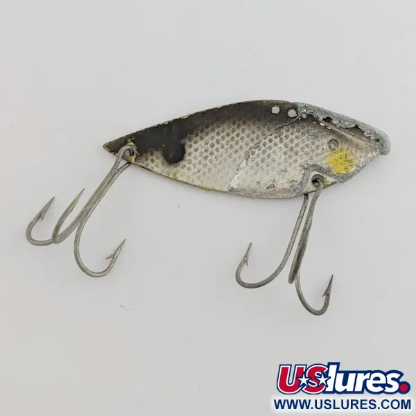 Pesant 3/4 oz (21 g), cette lame vibrante aux écailles argentées illustre l'ingénierie qui a fait du Cotton Cordell Gay Blade un incontournable des boîtes à pêche. Le corps de 2 1/2" (6,5 cm) présente un méplat caractéristique sur le front, conçu pour générer une résistance spécifique lors de la récupération. Sur la partie dorsale, vous trouverez trois points d'attache distincts ; l'utilisation du trou le plus proche du nez permet une récupération plus rapide avec moins de traînée. Ce spécimen, portant le code produit 24446, est dans un état 4/5. Il présente quelques légers manques de peinture sur le nez plombé, là où l'argent rejoint les touches jaunes de l'œil, mais le motif d'écailles gravé sur les flancs reste net. Deux hameçons triples d'origine sont solidement fixés, complétant ce leurre classique de fabrication américaine. La construction avec tête plombée offre un centre de gravité bas qui maintient le leurre à la verticale lors des présentations en eau profonde.
