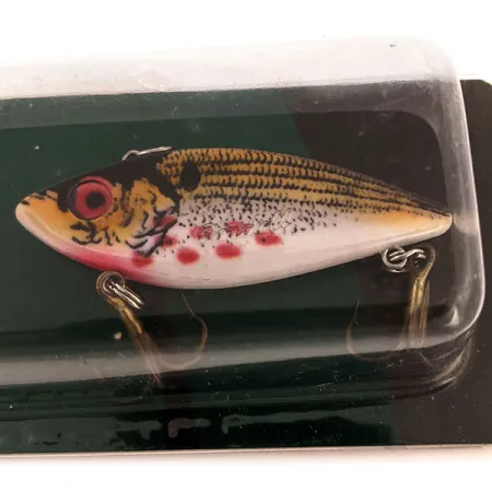 Des yeux rouges vifs associés à des taches « sanglantes » pourpres le long du flanc définissent le caractère visuel de ce lipless crankbait de 7 g (1/4 oz). Mesurant précisément 5 cm (2"), ce leurre perpétue la tradition de Cotton Cordell en matière de leurres bruiteurs conçus pour une profondeur de nage variable. La finition présente un motif d'écailles dorées sur la partie supérieure, passant en douceur à un ventre blanc. Référencé sous le code 12921, ce rattler coulant est conçu pour le lancer-ramener ou la traîne pour des espèces comme la perche, le brochet ou la truite. Article neuf dans son emballage blister d'origine, le leurre conserve son aspect d'usine avec une note de condition de 6. Les hameçons triples dorés sont brillants et fixés, tandis que le dos du carton détaille l'histoire du fabricant fondé à Hot Springs, Arkansas.