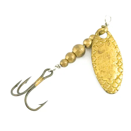 Pesant délicatement 2,5g (3/32oz), les composants en laiton massif de cette cuiller tournante reflètent un riche héritage de fabrication française. Mesurant 4,5cm (1 3/4"), l'ensemble présente une palette en forme de goutte d'eau méticuleusement estampée d'un motif d'écailles sur le devant et de l'identifiant "CP SWING MADE IN FRANCE" au verso. Cinq billes de laiton graduées sont enfilées sur l'axe central, fournissant le lest nécessaire au lancer. Ce spécimen spécifique, identifié par le code produit 7311, est présenté dans un état impeccable de 5/5, les surfaces métalliques conservant leur éclat d'origine. L'attache classique en fil de fer torsadé sécurise un hameçon triple affûté, garantissant que ce leurre reste un témoin fonctionnel de l'histoire de la pêche.