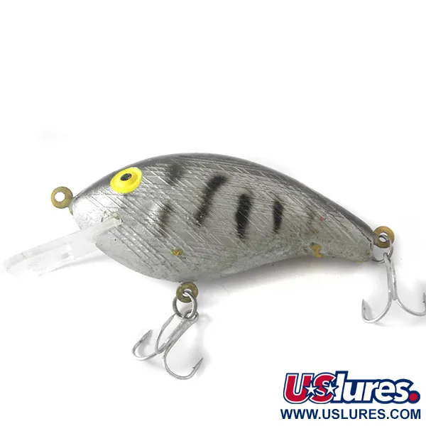 Des écailles grises texturées enveloppent le corps en plastique de ce motif Gray Tiger, accentué par des rayures verticales marquées et des yeux jaunes distinctifs. Le marquage Dae Yang est clairement frappé dans la bavette transparente, identifiant ce spécimen de 7 cm pour votre collection. Pesant 14 g, il est conçu pour atteindre des profondeurs de 1,2 m à 3,0 m, que ce soit au lancer ou à la traîne. L'armement se compose de deux hameçons triples fixés par des anneaux brisés. Noté 4/5, le leurre présente une légère usure de surface qui témoigne de son caractère vintage tout en restant en excellent état. Ce modèle particulier, désigné par le code produit 4102, utilise un profil flottant pour des récupérations linéaires ou en stop-and-go.