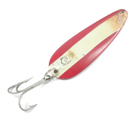 Mesurant 9 cm (3 1/2"), cette cuillère Eppinger arbore la finition contrastée Rouge / Blanc / Nickel, un incontournable des boîtes à pêche depuis plus d'un siècle. Le corps de 28 g (1 oz), identifié par le code produit 2092, présente le célèbre logo de tête de diable centré sur la bande blanche du côté peint. Le revers révèle une finition nickel propre estampillée « DARDEVLE DETROIT, U.S.A. », marquant son appartenance à la riche histoire de la pêche du Michigan. Cet exemplaire est en état 4/5, présentant quelques marques de surface et de légers éclats de peinture aux extrémités qui témoignent d'une utilisation passée au lancer tout en restant bien conservé. Un large hameçon triple argenté est solidement fixé, rendant le leurre prêt pour la traque des carnassiers agressifs, que ce soit au lancer ou à la traîne. Sa structure en métal épais est conçue pour durer lors des combats avec de gros poissons dans les courants ou les eaux profondes.