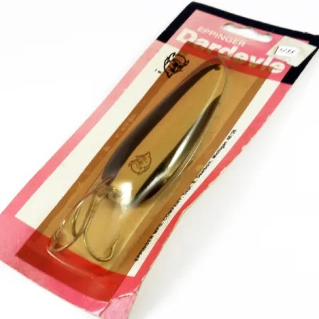 Pesant un poids substantiel de 28 g (1 oz), cette cuillère épaisse est conçue pour les lancers à longue distance et une présentation en eaux profondes. L'Eppinger Dardevle, portant le code produit 3135, mesure 9 cm (3 1/2") de long et arbore le logo emblématique de la tête de diable estampé sur sa surface métallique. Ce modèle spécifique est fini en Noir / Blanc / Nickel, présenté dans son emballage vintage d'origine avec une carte rose et blanche reflétant l'époque de fabrication à Dearborn, Michigan. Le leurre reste inutilisé et maintient une note d'état de 6. Équipé d'un grand hameçon triple monté en usine, il est fabriqué à partir des matrices exclusives que Lou Eppinger a perfectionnées il y a plus d'un siècle. Le dos de la carte inclut l'adresse de l'Eppinger Manufacturing Company sur Schaefer Highway, un détail significatif pour les collectionneurs de matériel fabriqué dans le Michigan. La construction en métal lourd garantit que le leurre reste profondément dans la strike zone lors d'une récupération linéaire.