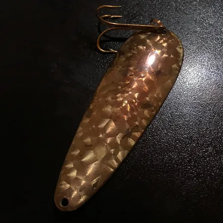Mesurant 9 cm (3 1/2"), la surface généreuse de cette cuillère ondulante met en valeur la finition texturée "Crystal" caractéristique du modèle 8743. Avec un poids de 28 g (1 oz), sa fabrication en métal de forte épaisseur témoigne de l'héritage d'Eppinger en matière de durabilité américaine. Sa forme oblongue concave, marque de fabrique depuis les débuts de Lou Eppinger dans un sous-sol de Detroit, est ici associée à un hameçon triple classique. Ce spécimen est remarquablement bien conservé, méritant une note de condition de 4/5 pour ses surfaces réfléchissantes propres et son armature robuste. La texture martelée offre une réflexion de la lumière multidimensionnelle, une technique utilisée par le fabricant de Dearborn depuis plus d'un siècle. Il est à noter que l'efficacité de ces cuillères leur a valu d'être intégrées aux kits de survie de l'aviation du gouvernement américain en temps de guerre. En lancer ou à la traîne, son poids important permet d'atteindre les couches d'eau profondes tout en conservant son orientation. L'hameçon triple bronzé est solidement fixé par un anneau brisé robuste à l'arrière, tandis que l'attache avant reste libre pour un émerillon.