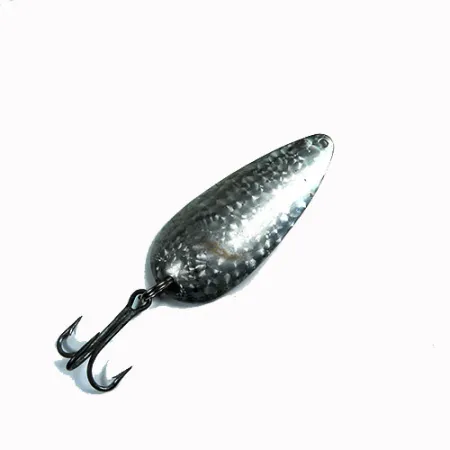 Ornée d'une finition martelée « Crystal » à écailles argentées, cette cuillère ondulante classique réfléchit la lumière sur sa surface alvéolée pour attirer l'attention des prédateurs de profondeur. Cette cuillère de lancer de 21 g (3/4 oz) mesure 7 cm (2 3/4 pouces) et présente le profil concave et oblong iconique qu'Eppinger a perfectionné dans le Michigan depuis la fondation de l'entreprise en 1906. Répertorié sous le code produit 0334, ce spécimen Dardevle Dardevlet représente le savoir-faire fiable que Lou Eppinger a initié dans son sous-sol de Detroit. En examinant de près l'armement, la finition texturée et l'hameçon triple sombre restent dans un état solide de 4/5. La conception en métal épais est prévue pour une récupération lente et constante, témoignant d'un design si efficace qu'il a été inclus dans les kits de survie de l'aviation militaire américaine. L'hameçon est solidement fixé à la base du corps en forme de larme via un anneau brisé robuste.