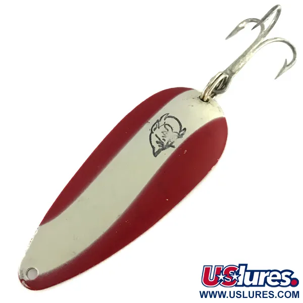 Pesant 21 g (3/4 oz), cette Eppinger Dardevlet est une cuillère à lancer robuste qui offre une excellente prise en main. La face avant arbore les emblématiques rayures diagonales rouges et blanches, avec le logo distinctif à tête de diable noir proprement frappé dans la section blanche centrale. Ce modèle spécifique mesure 7 cm (2 3/4") et présente un revers en cuivre poli. Au dos, l'estampillage « DARDEVLET » DETROIT U.S.A. est profondément marqué, témoignant de l'histoire de fabrication de l'entreprise à Détroit avant son déménagement à Dearborn en 1959. Le corps concave et lourd est associé à un hameçon triple vintage piquant, fixé par un anneau brisé fiable. Ce spécimen est en excellent état (5/5), conservant des graphismes nets et un émail éclatant.