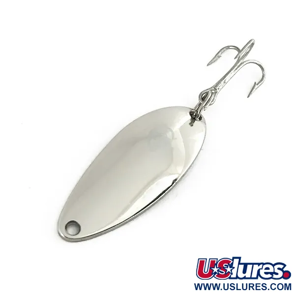 Le marquage « DETROIT U.S.A. », clairement estampillé dans le métal poli, identifie cette Dardevle Devle Dog 5200 comme un témoignage tangible de l'histoire d'Eppinger. Référencée sous le code 7422, cette cuillère mesure 4 cm (1 1/2") et pèse 7 g (1/4 oz), ce qui en fait un choix polyvalent pour le lancer léger ou la traîne. La finition Nickel haute brillance reste éclatante et miroitante, reflétant son état neuf. Ce modèle spécifique présente la forme oblongue classique avec un profil concave profond, une conception emblématique qu'Eppinger utilise pour générer un mouvement d'oscillation distinct lors de la récupération. L'armement arrière comprend un hameçon triple robuste fixé via un anneau brisé, tandis que l'attache avant est un simple trou percé proprement. La présence du poinçon Detroit sur un spécimen aussi propre offre un lien direct avec les racines de la marque dans le Michigan au milieu du siècle, avant son déménagement à Dearborn en 1959. Chaque détail de cette cuillère de 7 g (1/4 oz), de l'estampillage précis au placage uniforme, démontre la qualité de fabrication américaine qui maintient ces leurres dans les boîtes de pêche depuis des générations.