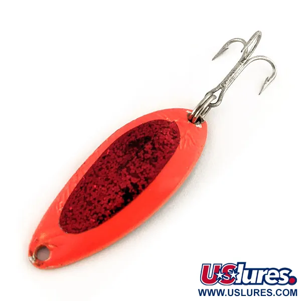 Avec un poids de 7 g (1/4 oz), cette cuillère ondulante compacte est un choix polyvalent pour les pêcheurs en matériel léger ciblant diverses espèces d'eau douce. Mesurant 4 cm (1 1/2"), la Dardevle Devle Dog 7900 UV (code 12262) porte l'héritage historique de la marque Eppinger, qui fabrique des leurres de haute qualité dans le Michigan depuis 1906. La finition Red / Nickel est associée à un insert central sombre et texturé distinct qui crée une empreinte visuelle unique. Lorsqu'elle est exposée à la lumière ultraviolette, la peinture extérieure orange-rouge réagit avec un éclat brillant, tandis que le centre sombre reste mat, offrant une cible à fort contraste dans les environnements à faible luminosité. L'armement comprend un seul hameçon triple piquant, fixé par un anneau brisé robuste à la queue. Construite à l'aide des matrices exclusives d'Eppinger aux États-Unis, le corps concave produit une action de dandinement spécifique lors de la récupération. L'état est noté 5/5, affichant une finition propre et vive sur toute la surface métallique. Le poinçon emblématique Dardevle est pressé sur la surface intérieure nickelée, confirmant son authenticité en tant que grand classique américain.