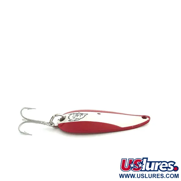 Le cuivre poli au verso rend ce Dardevle Midget immédiatement reconnaissable comme un classique Eppinger polyvalent. Mesurant 1 3/4" (4,5 cm) et pesant 3/16 oz (6 g), cette cuillère arbore le légendaire motif à rayures diagonales rouges et blanches sur sa face avant, ainsi que le logo distinctif en tête de diable. Les mots « DARDEVLE SPINNING U.S.A. » sont clairement estampillés au dos en cuivre, gage de sa fabrication américaine. Ce spécimen, identifié par le code produit 8942, est dans un superbe état 5/5, ne montrant que de très légers signes d'âge tout en conservant sa peinture vibrante et son fini métallique brillant. Il est équipé d'un hameçon triple propre et d'un anneau brisé. Cette taille est traditionnellement privilégiée pour cibler la truite, la perche ou l'achigan à petite bouche avec un équipement de lancer léger. Le dos en cuivre produit un éclat subtil et chaleureux qui contraste efficacement avec les couleurs vives de la face de la cuillère.