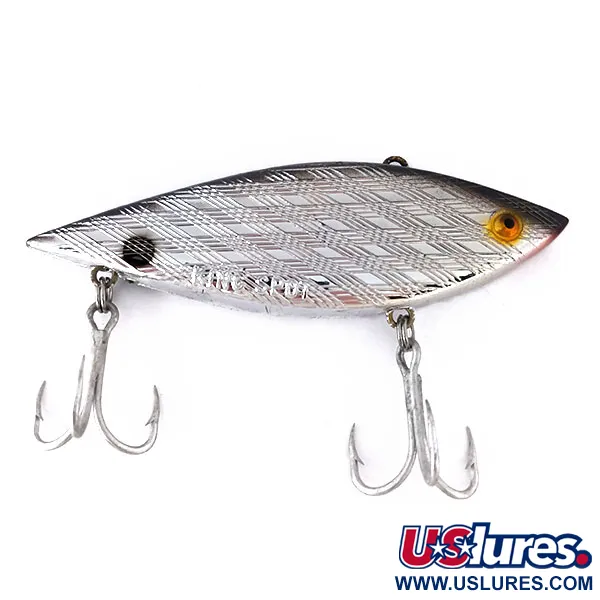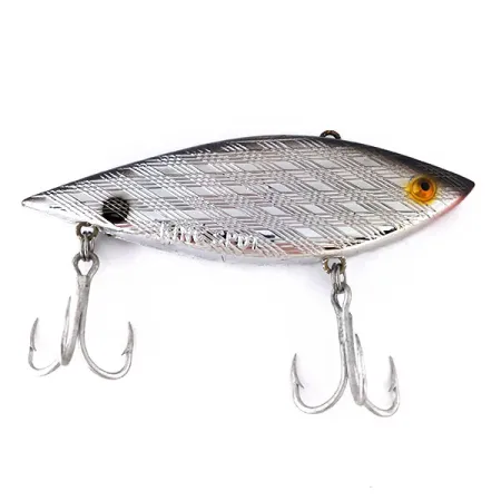 Pesant 21 g (3/4 oz), le Garcia King Spot présente une finition argentée frappante avec un motif d'écailles en diamant gaufré sur ses flancs. Ce leurre vintage sans bavette (lipless) et coulant, répertorié sous le code produit 10394, mesure 9 cm (3 1/2") et représente l'époque précédant la fusion de Garcia avec Abu Garcia. Le nom est frappé directement sur le côté du corps, conçu pour des applications à profondeur variable. Il est équipé de deux hameçons triples et d'une attache de ligne sur le dessus, ce qui en fait un choix polyvalent pour le lancer ou la traîne visant des espèces telles que le brochet, le sandre et la perche. L'armature et la finition métallique sont exceptionnellement bien conservées, et ce spécimen est classé en état 5/5.