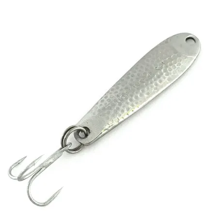 Le nickel martelé offre une surface texturée hautement réfléchissante à ce Hopkins S1 de 4,5 cm (1 3/4"), un modèle apprécié pour sa durabilité forgée. D'un poids de 9 g (1/3 oz), cette cuillère ondulante fabriquée aux États-Unis (Code produit : 9381) est nettement plus dense que ses homologues découpées, permettant des lancers précis. La finition martelée est en parfait état (5/5), affichant un éclat brillant sur toute la surface métallique. Elle est équipée d'un hameçon triple piquant fixé par un anneau brisé robuste. La forme en goutte d'eau s'affine vers la tête, munie d'un œillet pour le montage. Cette fabrication forgée est caractéristique de la longue tradition de la marque Hopkins dans la production de leurres métalliques de haute qualité aux USA.