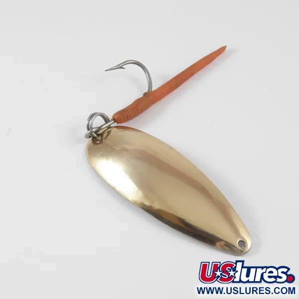 Pesant 17 g (3/5 oz), cette Johnson Sprite est une pièce classique de l'histoire de la pêche américaine, fabriquée à l'époque où la production était encore basée aux États-Unis. Mesurant 7 cm (2 3/4"), cette cuillère ondulante présente un profil effilé et allongé conçu pour le lancer et la traîne. Ce spécimen, identifié par le code produit 2957, est présenté dans une combinaison de finitions Cuivre et Argent qui offrent des options de reflets distincts selon la luminosité. Le côté convexe du corps métallique est clairement marqué du nom du fabricant et du modèle, illustrant le savoir-faire attendu du matériel Johnson vintage. À l'arrière, un hameçon simple est monté sur un anneau brisé et dispose d'un trailer en plastique orange vif, offrant un contraste haute visibilité par rapport au corps métallique. Ce leurre est dans un état 5/5, semblant n'avoir jamais été utilisé avec ses surfaces réfléchissantes et son armature intactes.