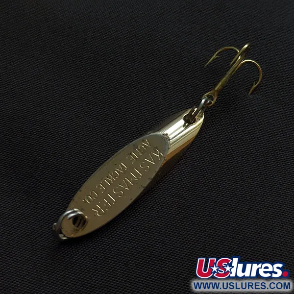Pesant 1/8 oz (3,5 g), cette cuillère à la finition dorée témoigne de l'ingénierie de précision pour laquelle Acme Tackle Co. est réputée dans sa fabrication d'équipements aux États-Unis. Le corps poli présente le design classique de coupe en biseau, mesurant 3,5 cm (1 1/2") de longueur, ce qui permet une présentation équilibrée lors d'une utilisation en jigging vertical ou au lancer dans les courants forts. Le marquage distinctif « KASTMASTER ACME TACKLE CO. » est gravé dans le métal, l'identifiant comme un exemplaire original plutôt qu'une imitation moderne. Ce leurre particulier, répertorié sous le code produit 21964, est en condition 4/5, affichant une surface propre et un armement intact. L'hameçon triple de couleur dorée est relié par des anneaux brisés robustes, garantissant que le leurre reste opérationnel pour cibler diverses espèces de carnassiers en eau profonde. L'alliage spécifique utilisé dans sa fabrication est adapté à ses proportions physiques pour maintenir la stabilité tant à la descente qu'à la récupération.