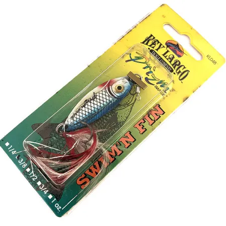 Des écailles de poisson bleu clair arc-en-ciel scintillent sur le corps de 4,5 cm (1 3/4") de ce Key Largo Swim'n Fin, un jig métallique vintage doté de la finition holographique Prizm Image signature du fabricant. Pesant 11 g (2/5 oz), ce spécimen spécifique, identifié par le code produit 11290, a été assemblé en République dominicaine à partir de composants américains. La conception intègre un œil 3D moulé réaliste et un émerillon rolling robuste fixé au nez pour une connexion sécurisée de la ligne. À l'arrière, un hameçon triple mer avec plumes montées à la main ajoute une touche de pourpre au profil argent et bleu. En tant qu'article inutilisé dans son emballage d'origine, le leurre est dans un état impeccable. Cette marque basée à Ft. Myers, en Floride, a spécifiquement conçu le Swim'n Fin avec un profil profilé pour imiter les petits poissons fourrage via diverses techniques de lancer ou de jigging vertical.