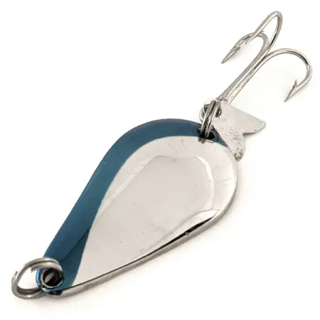 Estampillé du nom « K.O. WOBBLER » sur sa face concave, ce modèle illustre la qualité durable des cuillères à lancer Acme fabriquées aux États-Unis. Une bande bleu profond court le long du bord extérieur du corps en chrome poli, offrant un contraste net pour maximiser les reflets. Ce leurre de 4,5 cm (1 3/4") est doté de la queue « Sonic flipper », une petite languette métallique fixée à l'anneau brisé arrière qui interagit avec le mouvement de balancement du leurre. Pesant 14 g (1/2 oz), l'armement comprend un hameçon triple solide et des anneaux brisés robustes. Évaluée à 5/5, la finition chromée reste éclatante et l'aspect d'usine est exceptionnellement propre. Référencé sous le code 12813, ce leurre est conçu pour cibler les carnassiers en imitant le profil et la nage des petits poissons fourrage.