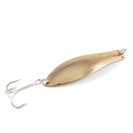 Les surfaces en cuivre poli confèrent à cette cuillère ondulante de 21g (3/4oz) un éclat chaleureux et réfléchissant qui attire immédiatement le regard. Référencé sous le nom Little Doctor 275, code produit 2901, ce leurre illustre les standards de fabrication américains classiques de la société Prescott Spinner. Avec une longueur de 9cm (3 1/2"), le leurre est conçu avec un profil mince et allongé, parfaitement adapté au lancer ou à la traîne à différentes profondeurs. Le corps métallique présente de subtils accents rouges près du nez, contrastant avec la finition métallique. Pour les collectionneurs, l'état 5/5 est évident grâce aux surfaces exceptionnellement propres et à l'hameçon triple argenté parfaitement entretenu. Un anneau brisé robuste au niveau de l'attache complète l'armement de ce modèle fabriqué aux États-Unis, resté remarquablement préservé sur toute sa longueur de 9cm (3 1/2").