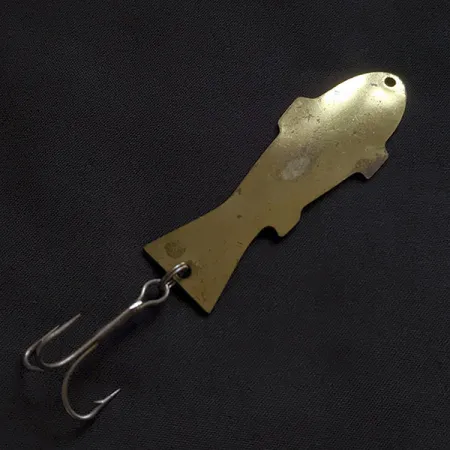 Pesant 11 g (2/5 oz), le profil en laiton matricé de cette Little Joe Tonka en fait une pièce d'équipement spécialisée issue du catalogue Lindy / Little Joe. Identifié par le code produit 22804, son corps de 7 cm (2 3/4") présente une silhouette réaliste en forme de poisson, s'effilant vers la queue où l'armement est fixé. L'état 4/5 reflète une surface bien conservée, sans corrosion profonde, bien qu'elle affiche les fines marques d'usage attendues pour un leurre métallique vintage. Un hameçon triple unique est fixé via un anneau brisé robuste, tandis que la tête du leurre est dotée d'un œillet d'attache percé avec précision. Classé comme une rareté, ce modèle en laiton brut souligne la simplicité fonctionnelle appréciée par les pêcheurs du nord pour diverses techniques de lancer.