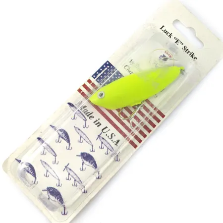 Pesant 7g (1/4oz), ce leurre de surface jaune vif est un exemplaire bien conservé de la gamme Rogers produite par Luck E Strike. Mesurant 5,5 cm (2 1/4"), ce popper présente une finition unie haute visibilité sur l'ensemble de son profil, conçue pour les techniques de lancer en surface. Cet article spécifique, identifié par le code produit 21309, est conservé dans son emballage d'origine, qui met en avant sa fabrication aux États-Unis à Cassville, Missouri. Le dos de l'emballage comprend les détails de distribution de KEN international inc., offrant un contexte intéressant pour les collectionneurs d'histoire du matériel de pêche lié à l'exportation. Ce leurre n'a jamais été utilisé et reste dans son état d'origine à l'intérieur de son blister. Destiné à des espèces telles que le brochet et la perche, ce leurre flottant ultraléger conserve ses composants d'origine et sa face concave distinctive pour l'animation en surface.