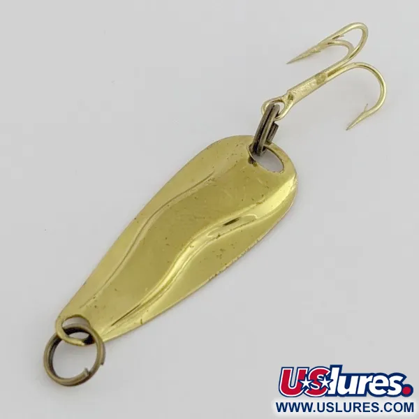 Clairement estampillée au verso du marquage « HOT SHOT W », ce spécimen présente le profil ondulé classique qui a contribué à définir l'héritage de Luhr Jensen. Pesant 1,3 g (3/64 oz), cette cuillère de 3 cm (1 1/4") est conçue pour les présentations ultra-légères au lancer ou à la traîne pour la truite et les petits carnassiers. La finition or poli reste éclatante sur les surfaces courbes, captant la lumière grâce à l'estampage ondulé du corps. L'armement d'origine est intact, incluant les anneaux brisés et un hameçon triple doré qui s'accorde parfaitement avec le corps de la cuillère. Portant le code produit 24440, ce leurre reflète le savoir-faire de qualité du fabricant basé dans l'Oregon. La préservation de la surface est excellente, notée 5/5, avec un placage très brillant et des signes d'âge minimes. Chaque arête reste vive et la construction globale est solide, conservant l'attrait esthétique d'une pièce de collection.