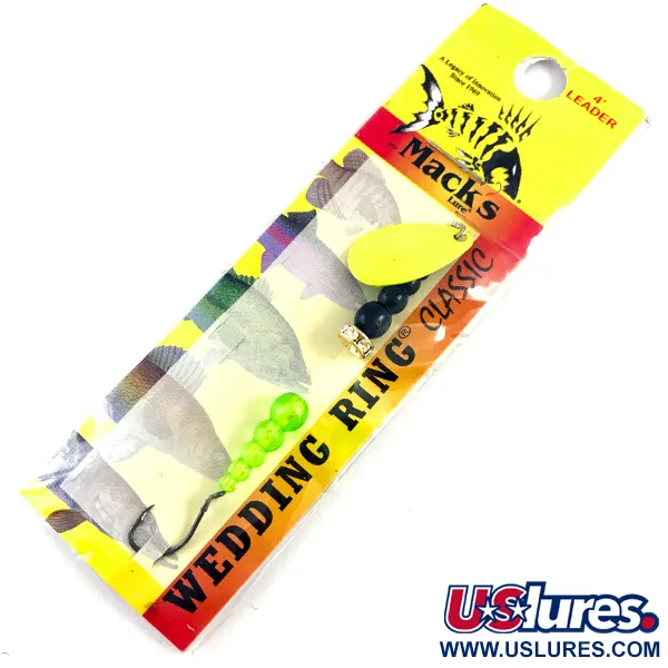 Des perles vert fluorescent et noir profond alternent le long de cet assemblage de cuillère classique, créant un profil à fort contraste. Une palette de spinner chartreuse vibrante surmonte l'ensemble, complétée par l'entretoise emblématique « wedding ring » incrustée de cristaux qui définit ce produit phare de Mack's Lure depuis des décennies. Originaire de l'État de Washington, ce leurre de 7 cm (2 3/4") est conçu spécifiquement pour la traîne légère où la visibilité est primordiale. L'ensemble comprend le bas de ligne d'origine de 10,16 cm (4"), rendant ce montage de 2 g (1/16 oz) prêt à l'emploi. Ce modèle, portant le code produit 4329, est neuf et conservé dans son emballage d'origine jaune et rouge. Un hameçon simple décalé est positionné à la base de la rangée de perles, respectant la configuration traditionnelle utilisée par Mack's depuis les années 1960.