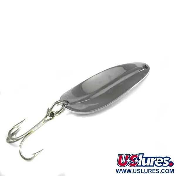Une finition Nickel / Rainbow Hologram confère au corps de 5 cm une réflexion prismatique distincte qui se détache dans la colonne d'eau. Identifiée par le code produit 0422, la cuillère TODDCO Main liner de 11 g utilise un design en forme de larme courant dans le matériel de pêche fabriqué aux États-Unis à cette époque. La cuillère est équipée d'un hameçon triple propre et d'un anneau brisé robuste, des composants qui témoignent de sa conception fonctionnelle. Noté 4/5 pour son état, l'exemplaire présente une surface métallique bien conservée et des écailles holographiques intactes. Le rapport poids/taille permet des lancers efficaces à différentes profondeurs sans avoir besoin de plomb supplémentaire.