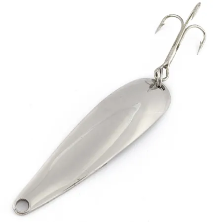 Pesant 8 g (1/4 oz), cette cuillère ondulante classique représente l'âge d'or de la fabrication d'articles de pêche dans le Wisconsin. Produit par la Marathon Bait Company, qui fut le plus grand fabricant de leurres de l'État entre 1929 et 1979, ce modèle de 6 cm (2 1/4") arbore une finition nickel brillante. La face interne est frappée du nom Marathon, gage de qualité issu de leurs cinquante ans d'histoire de production. L'armement se compose d'un hameçon triple propre fixé par un anneau brisé à l'arrière, tandis que la tête présente un orifice percé pour une attache directe sur la ligne ou une agrafe. Évaluée à 5/5, sa surface nickelée conserve un aspect brillant et réfléchissant sur son corps allongé en forme de larme. Pour les collectionneurs suivant les références de catalogue, cet article est répertorié sous le code produit 22380. Sa construction en métal plein et sa répartition du poids en font un choix polyvalent pour les pêcheurs souhaitant ajouter une pièce de l'histoire américaine du milieu du siècle à leur collection.