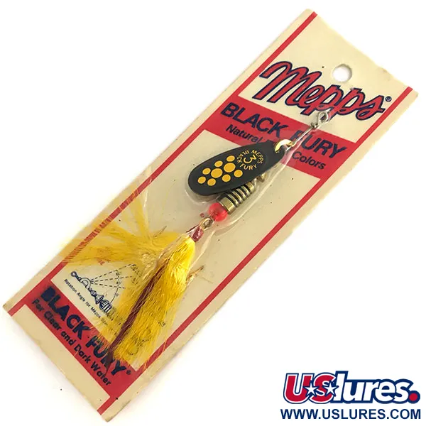 Archives du musée : Mepps Black Fury 3 Dressed Cuillère, Noir / Jaune, 7,3g, Plumes, #8677