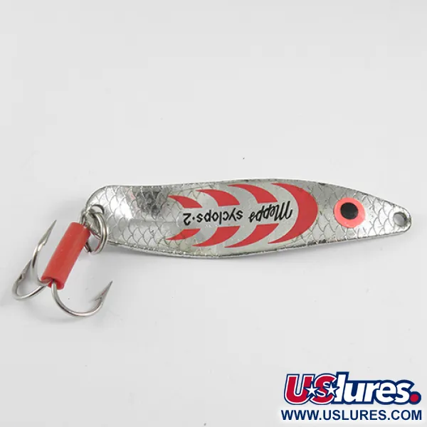 Le logo Mepps et le marquage « Made in France » sont clairement estampillés au dos de cette cuillère ondulante, attestant de son héritage dans la fabrication de matériel de pêche européen. Ce leurre de 7,5 cm présente une finition en nickel poli sur la face avant, accentuée par des motifs d'écailles rose-rouge vibrants et un œil assorti près de l'œillet supérieur. Pesant 17 g, le corps métallique est associé à un hameçon triple piquant muni d'une gaine en plastique rouge sur la hampe, servant d'attractant visuel. Référencée sous le code produit 1791, la surface métallique conserve un haut degré de lustre. L'état de cet exemplaire est de 4/5, ne montrant que de très légers signes d'utilisation antérieure tout en conservant tout l'armement et les détails de peinture d'origine. Sa géométrie unique en forme de S est conçue pour lancer à travers diverses couches d'eau, garantissant sa stabilité à différentes vitesses de récupération.
