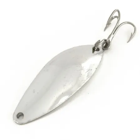Affichant 1/4oz (7g) sur la balance, le corps en forme de larme de cette cuillère ondulante fabriquée au Japon illustre le design simple et efficace privilégié par Mister Twister lors de sa période de production de leurres métalliques. La finition argent poli s'étend sur toute la longueur de 1 1/2" (4cm), offrant un flash à haut contraste sous l'eau. Sur le côté convexe, l'estampage affiche clairement le nom « Mister Twister Shelby Sportfisher » ainsi que son origine « Japan », un détail que les collectionneurs recherchent pour vérifier l'authenticité de l'exemplaire. Cet article particulier, portant le code produit 7444, est en excellente condition, avec une note de 5/5 pour ses surfaces propres et ses composants préservés. Un hameçon triple à finition argentée est solidement fixé à la queue via un anneau brisé robuste, tandis que le nez dispose d'un œillet d'attache pré-percé. La répartition du poids est équilibrée vers l'extrémité la plus large de la lame métallique, spécifiquement conçue pour les lancers longue distance ou les techniques de jigging vertical.