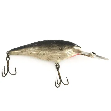 Pesant 9 g (1/3 oz), ce leurre Moriyama du Japon affiche un profil classique de plongeur profond conçu pour atteindre des profondeurs allant jusqu'à 3,5 m (11,5 ft). Le corps argenté de 9 cm (3 1/2") est orné de motifs d'écailles texturés évoluant vers un dos sombre contrasté et une discrète touche rouge à la gorge. Évalué à 3/5, ce modèle montre des marques d'utilisation authentiques en action de pêche, incluant une trace de frottement circulaire d'hameçon sur le flanc ainsi qu'une petite fissure près de l'attache de l'hameçon. Identifié par le code produit 9160, le leurre possède toujours ses hameçons triples d'origine et une grande bavette transparente. La finition argentée présente un aspect vieilli et doux qui met en relief les détails soignés des écailles le long des flancs du corps.