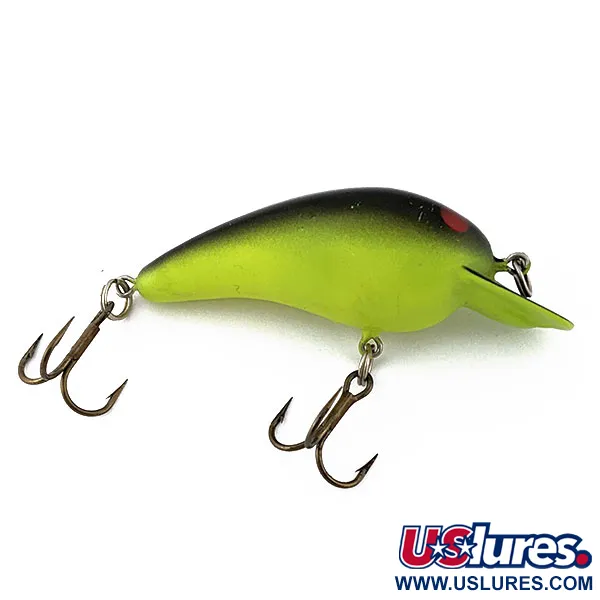 Une finition vert mat avec un dos sombre contrasté définit ce modèle, reprenant l'esthétique classique de Norman, souvent privilégiée pour les eaux teintées. Pesant 1/4 oz (7 g), le Baby N est dimensionné pour cibler le black-bass dans les structures peu profondes et mesure 2 1/4" (5,5 cm) de longueur. Ce modèle flottant est conçu avec une chambre de billes interne pour une présentation sonore, que ce soit au lancer ou à la traîne. Sa bavette est configurée pour atteindre des profondeurs comprises entre 0,6 et 1,2 m (2 - 4 ft), ce qui en fait un choix efficace pour les profondeurs intermédiaires. Identifié par le code produit 18493, le leurre dispose d'un œil rouge vif qui offre un point d'attaque visible sur le corps vert chartreuse. L'armement d'origine est en excellent état, reflétant une note de condition de 5/5. L'héritage de fabrication américaine de Norman se manifeste par des lignes de jointure nettes et une finition constante sur ce crankbait de 1/4 oz (7 g).
