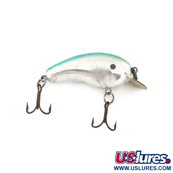 Des reflets bleu-vert le long du dos contrastent magnifiquement avec la finition argentée brillante de ce compact Norman Tiny N. Mesurant 1 1/2" (4 cm) et pesant 1/8 oz (4 g), ce crankbait flottant est un outil classique fabriqué aux États-Unis pour le lancer ou la traîne en eau peu profonde. Des chambres de billes internes assurent une présence sonore distincte lors de la récupération à des profondeurs comprises entre 0,6 et 1,2 m. Visibles sur la tête, les yeux jaunes aux pupilles noires constituent un point focal juste au-dessus de la bavette intégrée robuste. Identifié par le code produit 9987, ce spécimen est dans un état 5/5, conservant un éclat brillant sur ses surfaces métalliques et un tranchant parfait sur les hameçons ventraux et de queue d'origine.