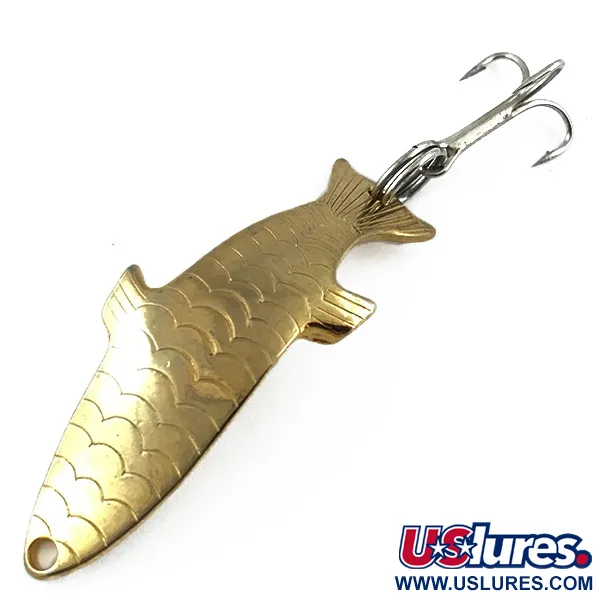 Pesant 3/16oz (5,5g), cette Phoebe à la finition dorée est un exemple remarquable du savoir-faire américain d'Acme. Le corps métallique de 1 3/4" (4,5cm) présente un motif d'écailles embouti détaillé, conçu pour produire une illusion tridimensionnelle une fois immergé, captant la lumière sous plusieurs angles. Sur la face concave, le leurre est clairement marqué du nom "PHOEBE", associé au code produit 5527. L'armement se compose d'un anneau brisé robuste à l'arrière tenant un hameçon triple piquant, tandis que la tête présente un œillet net pour le fil ou une agrafe. Grâce à sa conception hydrodynamique spécifique, cette cuillère reste efficace que vous pêchiez en récupération lente et profonde ou à un rythme plus rapide en eau peu profonde. Ce spécimen particulier est en état 5/5, conservant son éclat doré poli sur toute la surface estampée.