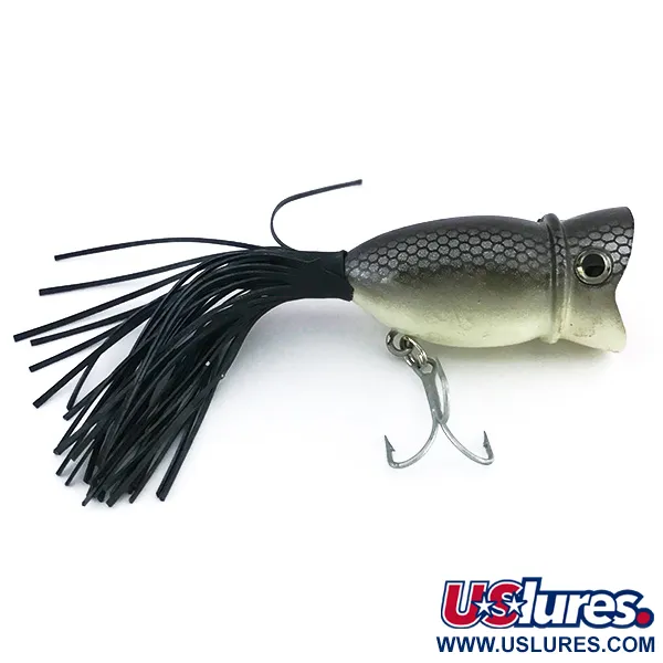 Une bouche rouge concave et profonde définit le profil avant de ce leurre de surface de 4 cm (1 1/2") de The Producers. Pesant 8g (1/4oz), le modèle 8054 présente un motif d'écailles grises distinct sur un ventre olive pâle, offrant un contraste classique typique du matériel américain du milieu du siècle. L'arrière est terminé par un faisceau dense de filaments de caoutchouc noir au lieu des plumes traditionnelles, ajoutant une présence visuelle significative au profil. Ce spécimen est dans un état 5/5, semblant totalement inutilisé avec sa peinture et son armature d'origine préservées. Il dispose d'un unique hameçon triple ventral et d'un point d'attache encastré profondément dans la gorge rouge, une conception destinée aux techniques de lancer en surface. En tant que leurre flottant et bruiteur, il est conçu pour une présentation en surface ciblant le brochet ou la grosse perche.