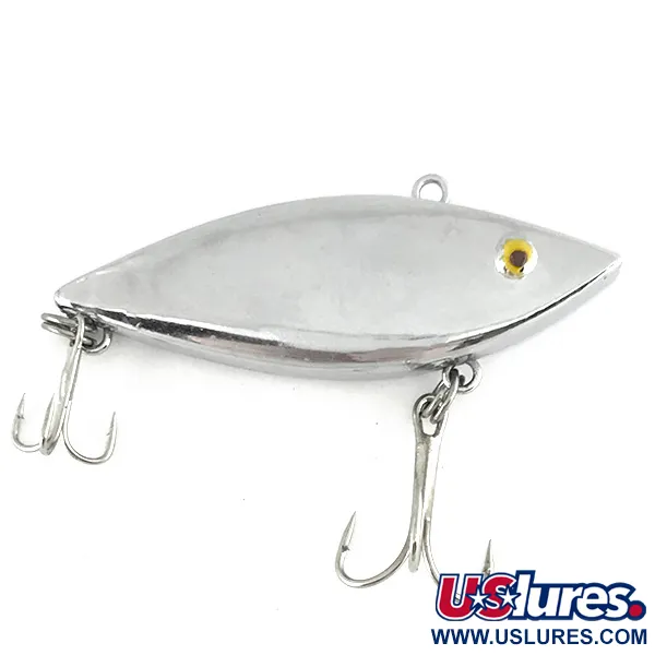 Reflétant la lumière avec une surface brillante de haute qualité, la finition Mirror de ce Producers Zero Tyrone Boomer Wells est un exemple remarquable du design classique des leurres américains. Mesurant 6,5 cm (2 1/2") et pesant 8,5 g (1/3 oz), ce modèle coulant est lesté pour atteindre les zones profondes où se tiennent souvent les perches et les sandres. Répertorié sous le code produit 7192, il présente une construction interne bruiteuse destinée à assurer une présence auditive sous l'eau. L'armement reste dans un excellent état 5/5, affichant un éclat métallique immaculé bien préservé au fil des ans. Un simple œil peint en jaune et noir est situé près du nez, contrastant vivement avec le corps chromé. L'attache de ligne se trouve sur la crête dorsale, caractéristique de son profil lipless, tandis que deux jeux d'hameçons triples sont fixés par des anneaux brisés robustes au ventre et à la queue. Ce spécimen particulier met en évidence les normes de fabrication durables communes aux articles de pêche vintage fabriqués aux USA, conservant son intégrité structurelle et sa qualité réfléchissante.