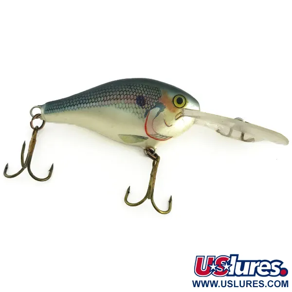 Pesant 10g, ce poisson-nageur compact de type deep-diver est conçu pour atteindre des profondeurs comprises entre 2,5 et 3 mètres. Le Rapala Risto Rap 5, code produit 9281, arbore la finition classique SD (Shad) avec des écailles détaillées sur le dos et des tons nacrés sur le ventre. Mesurant 5 cm de long, ce leurre est un choix polyvalent pour le lancer ou la traîne du brochet et du sandre. Ce spécimen est en état 4/5, présentant quelques légères rayures de surface causées par le frottement des hameçons triples. Une bavette transparente proéminente est associée à un anneau brisé pour un montage direct, tandis que les yeux jaunes distinctifs et les accents rouges près des ouïes offrent des signaux visuels naturels. L'armature bronzée reste robuste, fidèle à la fiabilité des fabrications de cette époque.