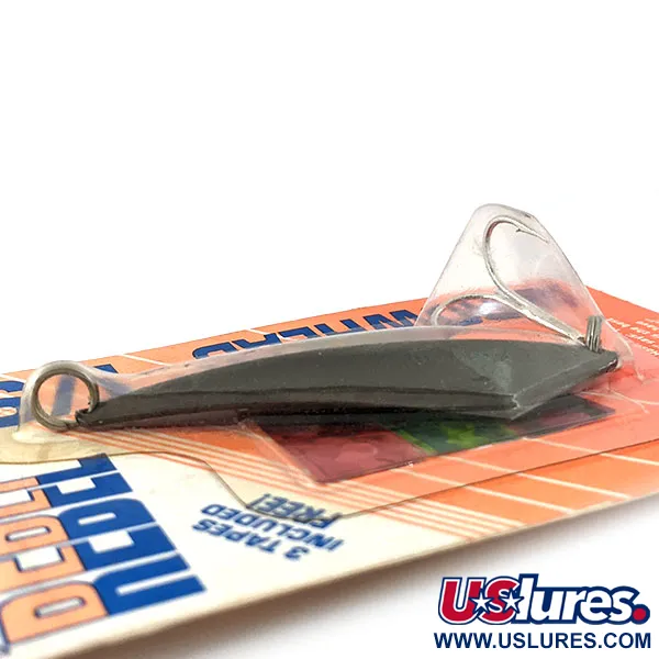Pesant 17 g (3/5 oz), cette cuillère de traîne présente la géométrie angulaire distinctive propre à la série Arrowhead T/S. Fabriqué aux USA par Rebel, une marque du groupe Pradco, ce modèle porte le code produit 15144. D'une longueur de 9 cm (3 1/2"), son corps métallique est estampillé du logo Rebel et arbore une finition à haute réflexion. Bien que le catalogue indique la couleur Black, le leurre possède une surface polie conçue pour produire des éclats lumineux lors de la traîne aux profondeurs déterminées par un downrigger ou un plongeur. Cet exemplaire n'ayant jamais servi est resté scellé dans son emballage d'origine de 1990, lequel inclut trois bandes adhésives multicolores pour personnaliser l'aspect du leurre sous l'eau. Recommandé par l'animateur Bill Saiff, ce concept a été spécifiquement élaboré pour les carnassiers des Grands Lacs et de mer, tels que le saumon et la truite steelhead.